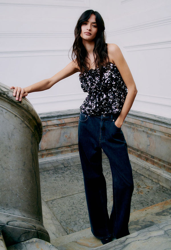 Shiny Strap Top - Halliot Denim Jeans