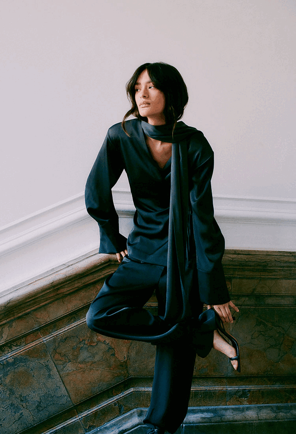 The Winter 25 collection ‘Midnight Allure’ transforms classic tailoring with fluid satin, sculptural silhouettes, and soft viscose, creating a wardrobe that is both bold and refined.