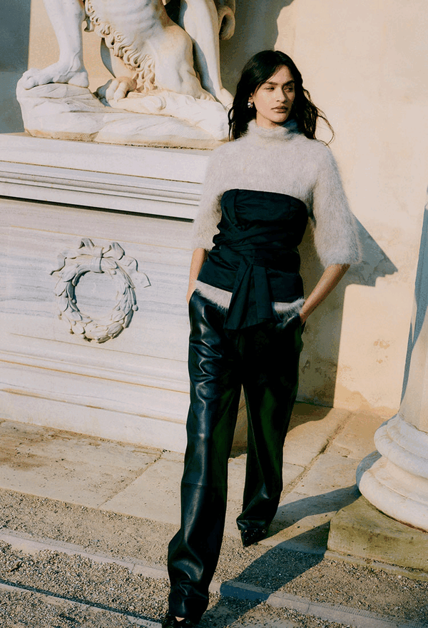 Karla Knit SS - Bow Top - Aluna Bonded Leather Trousers